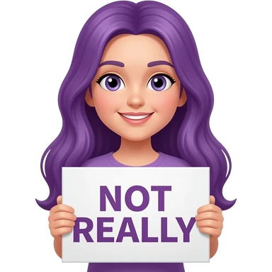 girl with long purple hair holding a NOT REALLY sign emoji