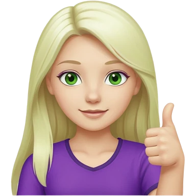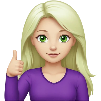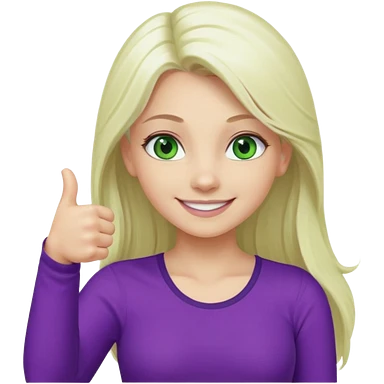 Long platinum blonde hair girl with green eyes in purple top with thumbs up emoji