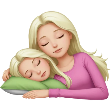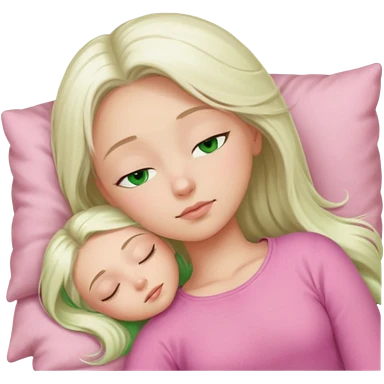 Long platinum blonde hair girl with green eyes in pink top sleeping emoji