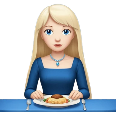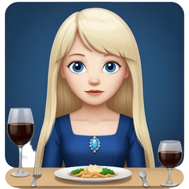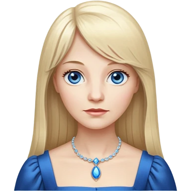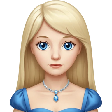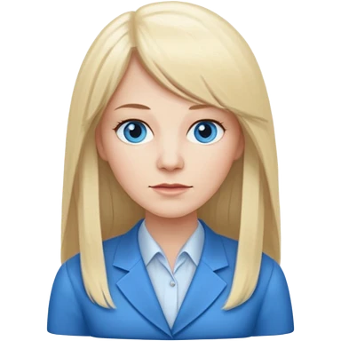 Long, straight blonde hair, parted down the middle, girl, wearing black satin shirt, light tan glowy skin, green eyes and rosy cheeks with light mauve lipstick emoji | AI Emoji Generator