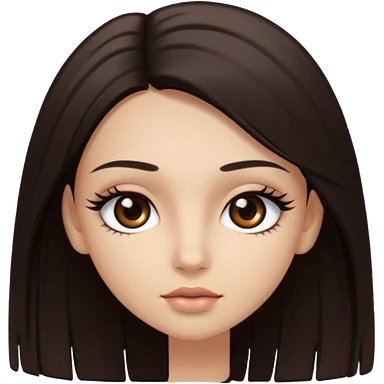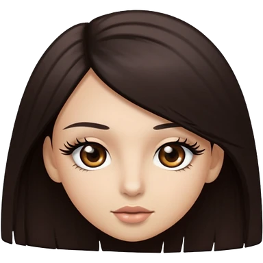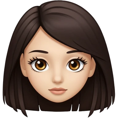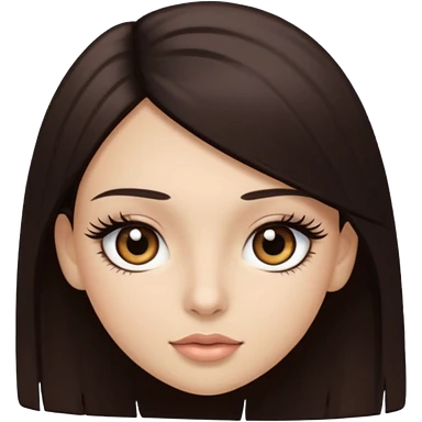 long straight hair dark brown eyes and long lashes with and light skin emoji | AI Emoji Generator