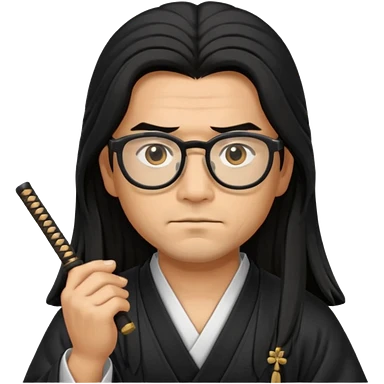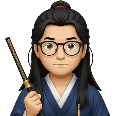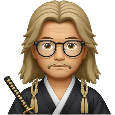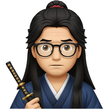 Long Haired Samurai with Glasses,Long-haired ronin adjusting spectacles emoji