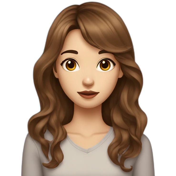 long wavy brown hair skinny girl with long side bangs, thin face and makeup from head to chest emoji | AI Emoji Generator