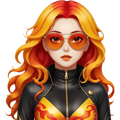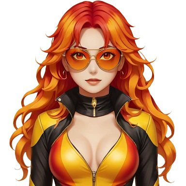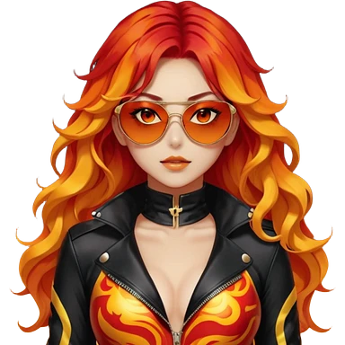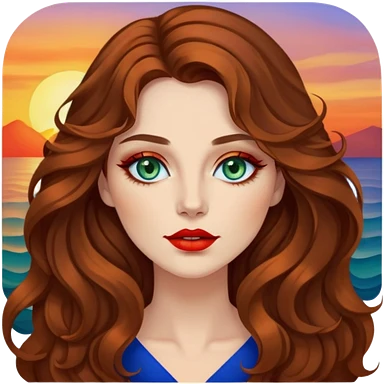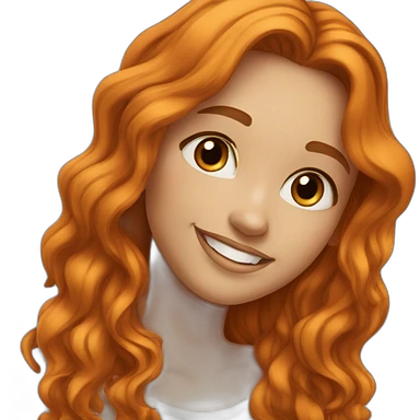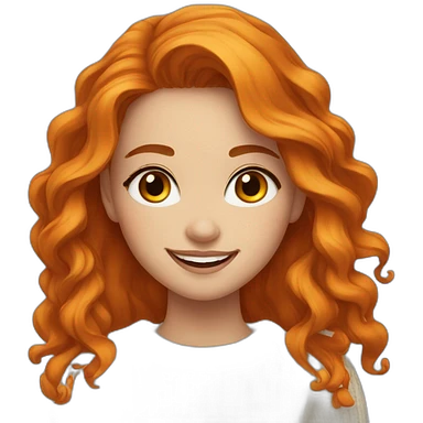 Long wavy red orange hair orange brown eyes beautiful face thick eyelashes pink lips gorgeous skinny fair skin white aesthetic tall girl working on laptop cozy emoji | AI Emoji Generator