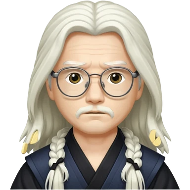 Long Haired Samurai with Glasses, white Long-haired ronin adjusting black spectacles emoji