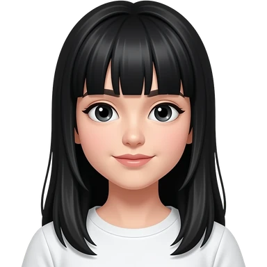 long black hair green eyes wearing black T-shirt, bright face emoji