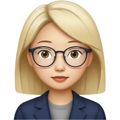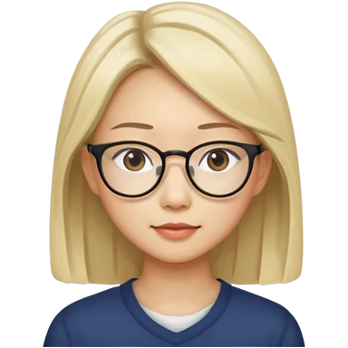 asian looking female with slight blonde hair a little longer with eye glasses, fair complexion not that pointed nose but slighty little eye please make the hair longer shoulder length emoji