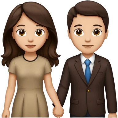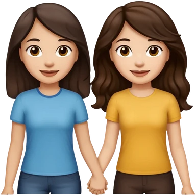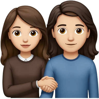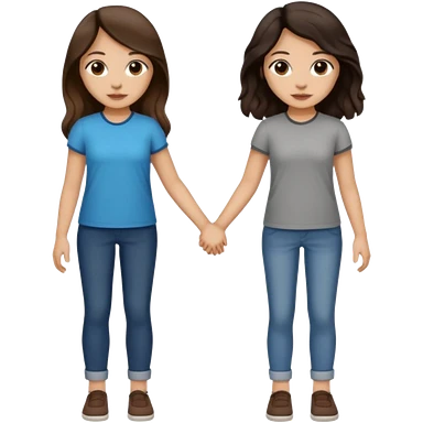 Longer wavy hair for one and straight for the other both dark brown hair. Light skin tone holding hands emoji | AI Emoji Generator