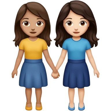 Longer wavy hair for one and straight for the other both dark brown hair. Light skin tone holding hands. Both woman emoji