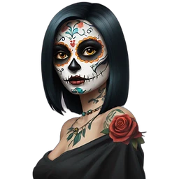 Lady looking over shoulder day of the dead tattoos and eyepatch emoji