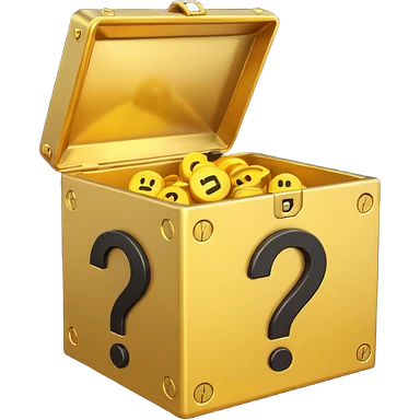 сгенерируй смайл loot box в стили классических смайлов с вопросом золотой, не деревянный, а металический более смайликовый стиль. 3d emoji