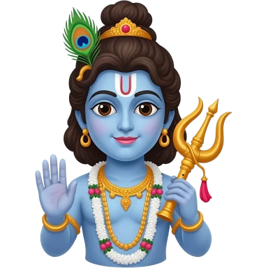 Lord Krishna is wearing mayur pankh, sudarshan chakra and flute in one emoji emoji