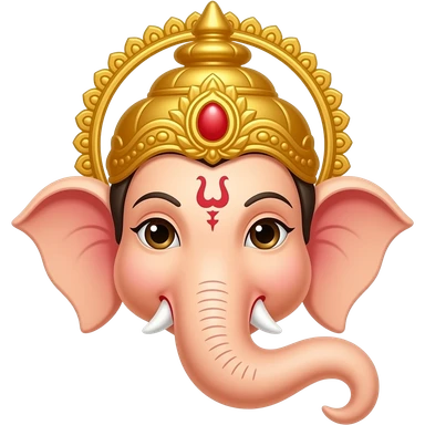 A cute and detailed emoji-style Lord Ganesha idol, with an elephant head, big ears, wearing a crown and ornaments, sitting on a lotus, holding a modak, vibrant colors, divine aura emoji