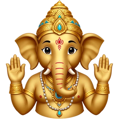 green ganesha hindu god with 4 hands,the right low hand in varada mudra emoji