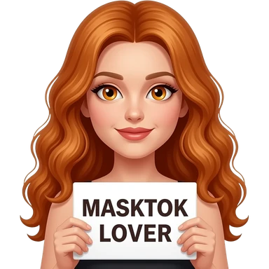 sexy girl with long wavy ginger hair and ginger eyes wearing a top is holding a MASKTOK LOVER sign emoji