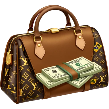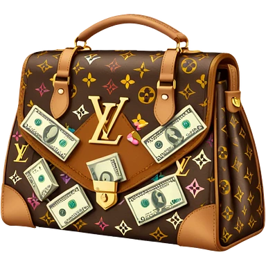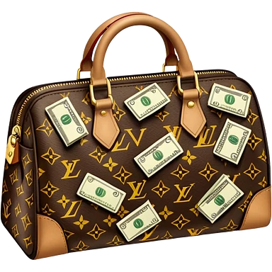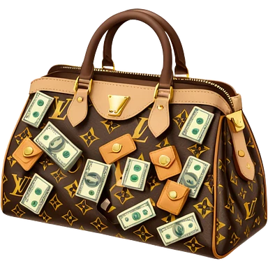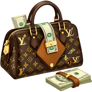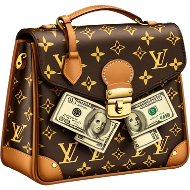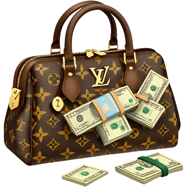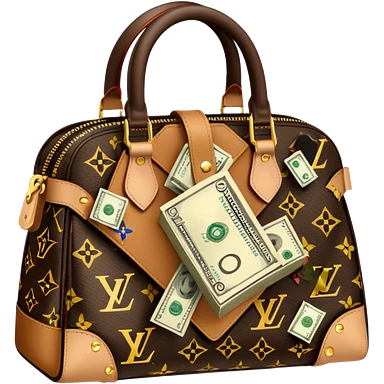 Louis Vuitton purse with dolars in the bag emoji