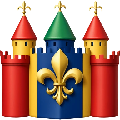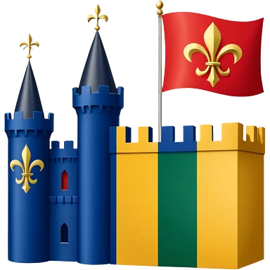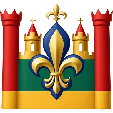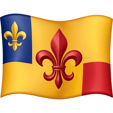 Louisiana Creole flag in 4 boxes: gold fleur-de-lis on deep blue/black; green, yellow, red stripes in upper right and lower left with green star in upper right; yellow castle on red in lower right. Flat vector, clean, high contrast, clear at small size. emoji