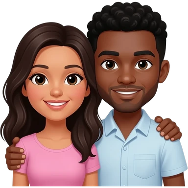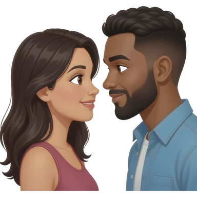 Love tan woman long wavy blonde hair and black lace with a white man short spiked blonde hair wearing Brown jacket eating chick filet emoji