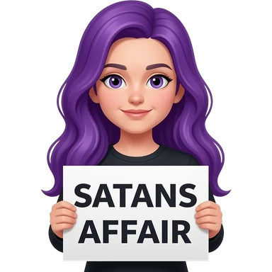 girl with long purple hair with a SATANS AFFAIR sign emoji