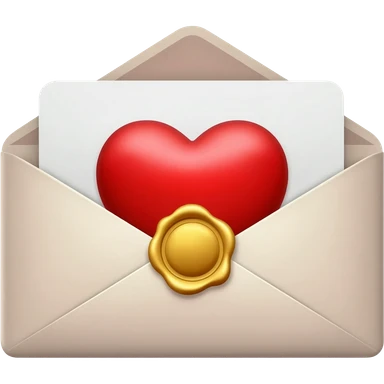 "A romantic love letter in an envelope sealed with a heart-shaped stamp and a pink ribbon, vintage style." emoji