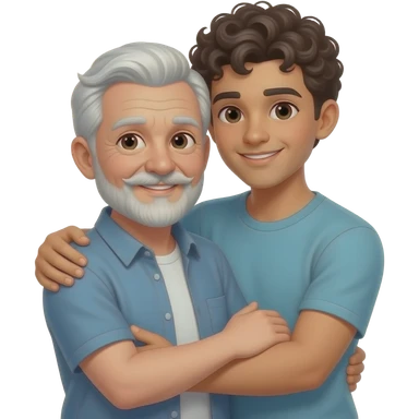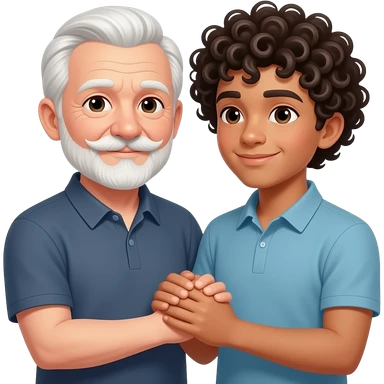 Love between an older man with white hair and handlebar mustache and goatee with young man with curly dark hair emoji