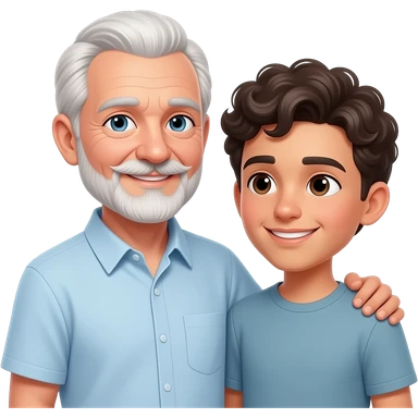 Love between an older man with short white hair and handlebar mustache and goatee with a tall young man with fair completion and curly dark hair emoji