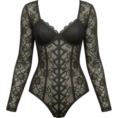black lace bodysuit with a structured, sweetheart-neckline. emoji