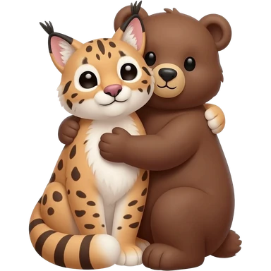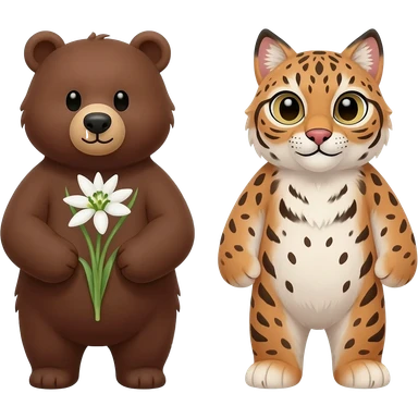 lovely bear hugs angry lynx and gives her a snowdrop flower with love emoji | AI Emoji Generator