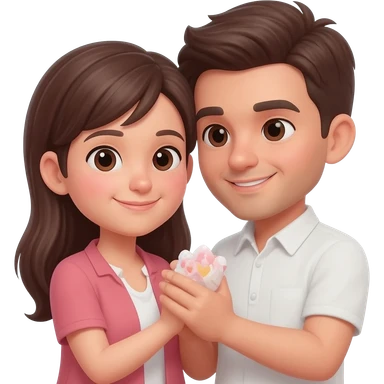 "Couple of lovers. A Pregnant Woman with long brown hair and fair skin. And man with short brown hair and fair skin. Hugging each other." emoji