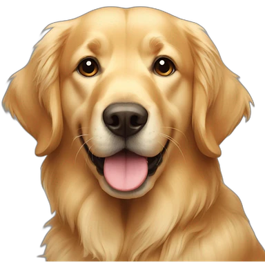 Cinematic Cute Golden Retriever Portrait Emoji, Head tilted playfully and inquisitively, showcasing a rich, glossy golden coat with a healthy sheen, round, sparkling brown eyes filled with curiosity, Simplified yet irresistibly adorable features, highly detailed, glowing with a warm, friendly glow, high shine, affectionate and lively, stylized with a touch of whimsy, bright and endearing, soft glowing outline, capturing the essence of a mischievous yet loving companion, so playful it feels like it could leap out of the screen and into your arms! emoji