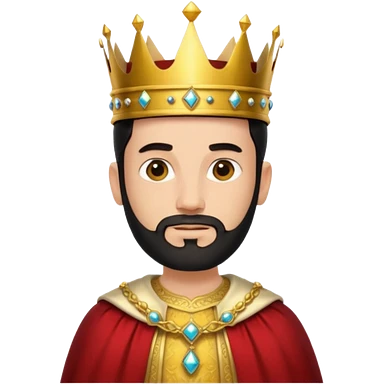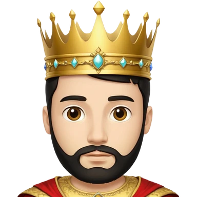 Bearded King, young king with short black beard, royal staff in hand, wearing crown emoji