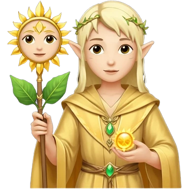 { "type": "human", "look": "light elf healer, golden robe, staff with leaf and sun motif", "description": "a light elf healer wearing a golden robe and holding a staff with leaf and sun symbols" } emoji