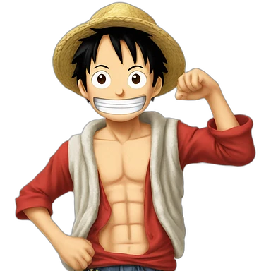 Luffy with his straw hat and his scar at the bottom of the right eye smiling with closed eyes in the Eiichirō Oda’s style emoji