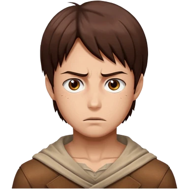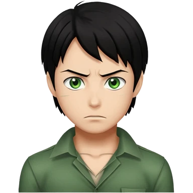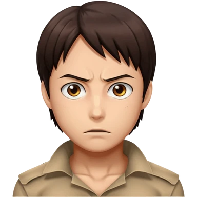 “Make him look like Eren Yeager S3 — long brown hair tied back, strong jawline, sharp green eyes, that cold, intense Eren vibe.” emoji