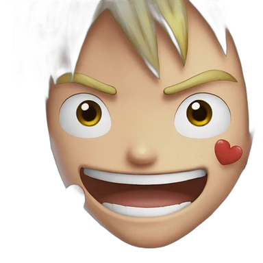 two cartoon monkeys hugging and kissing. The larger monkey is wearing a yellow straw hat like Luffy’s from One Piece. The smaller monkey is wearing a solid red headband. A small red heart floats between them to express affection. emoji