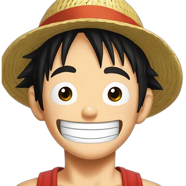 Luffy with his straw hat and his scar at the bottom of the right eye smiling with closed eyes in the Eiichirō Oda’s style emoji