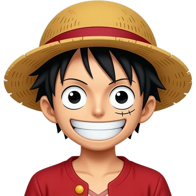 Luffy with his straw hat and his scar at the bottom of the right eye smiling with closed eyes in the Eiichirō Oda’s style emoji