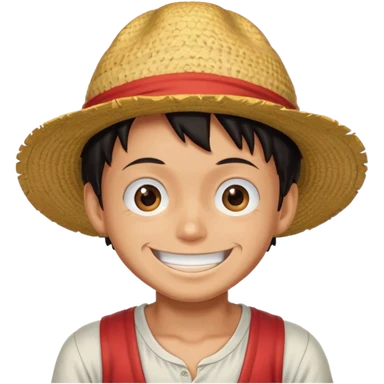 monkey d luffy with white hair eyebrow, and red eyes sitting, emoji