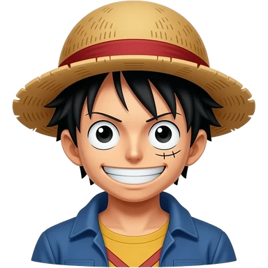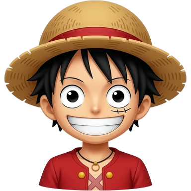 Stewhat luffy, a young pirate wearing a straw hat with a scar beneath his left eye emoji