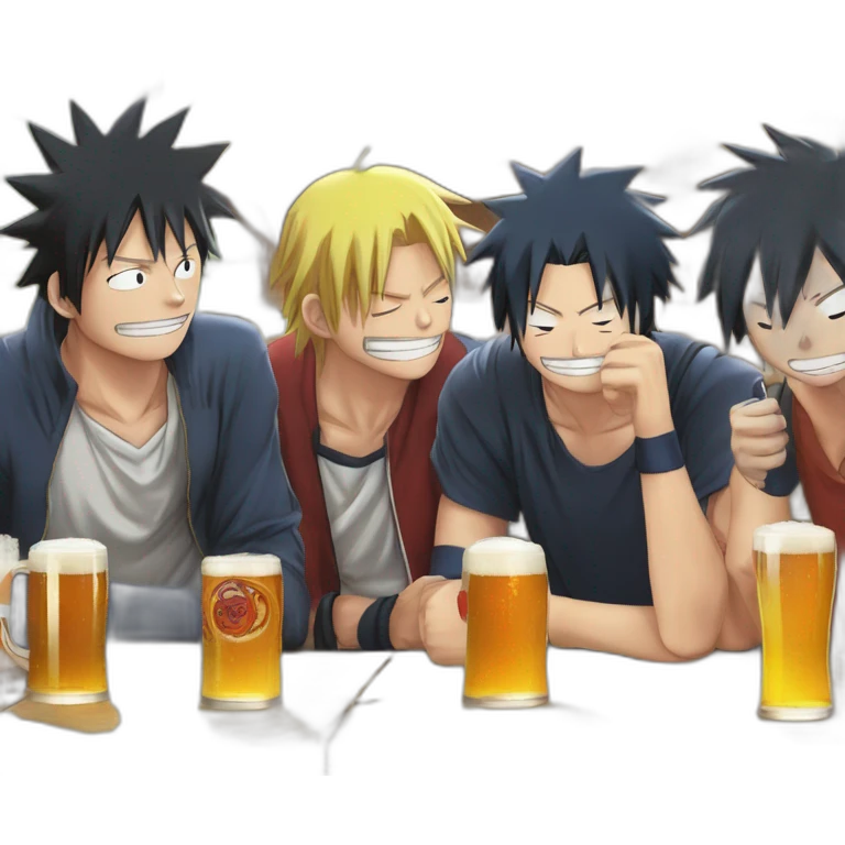 Luffy zorro Naruto et Sasuke qui boivent une biere emoji | AI Emoji Generator