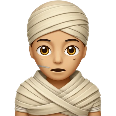 Mummy Cartoon: Chubby, friendly-looking mummy with oversized eyes and loose wrappings emoji
