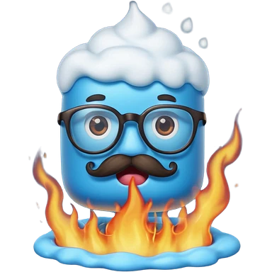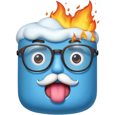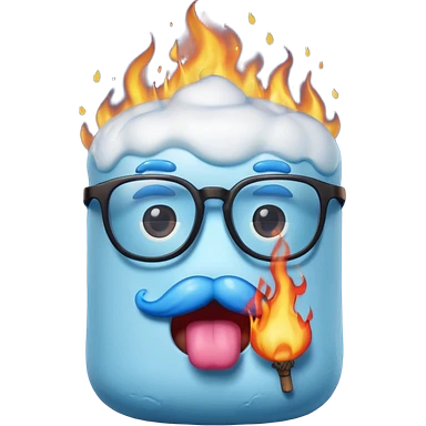blue marshmallow on fire, surprised with mustache and glassess, just marshmallow emoji