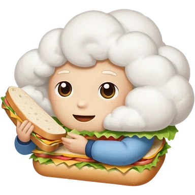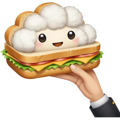 Not on top of the sandwich, it is onto if a big cloud and holding the sandwich in its hand emoji