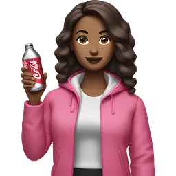 Woman with dark brown hair, dark brown eyed and light skin waring pink lulu lemon jacket, drinking cherry diet coke bottle’s emoji