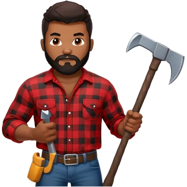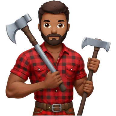 Multiracial chunky lumberjack man with ax in plaid emoji