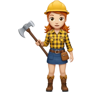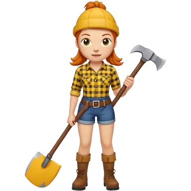 ginger lumberjack woman holding axe yellow checked shirt emoji