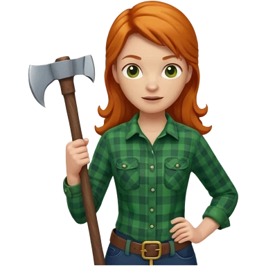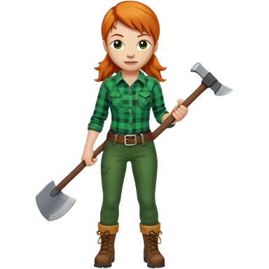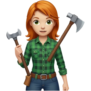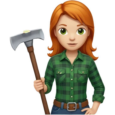 ginger lumberjack woman holding axe green checked shirt emoji