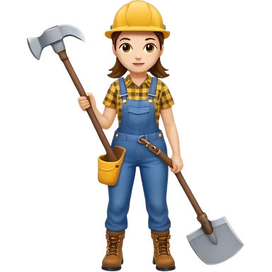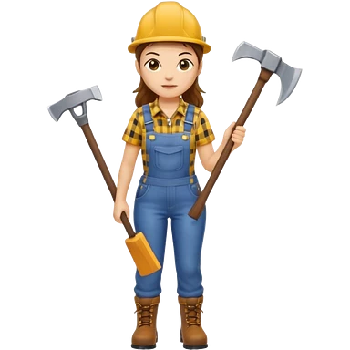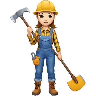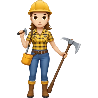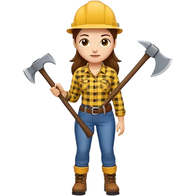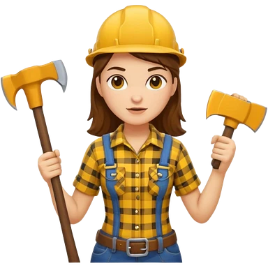 lumberjack woman holding axe yellow checked shirt and overall emoji