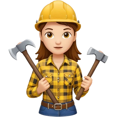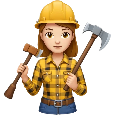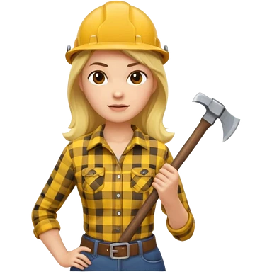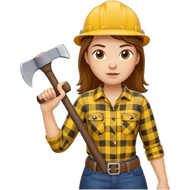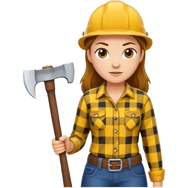 lumberjack woman holding axe yellow checked shirt emoji