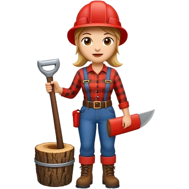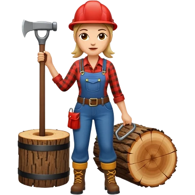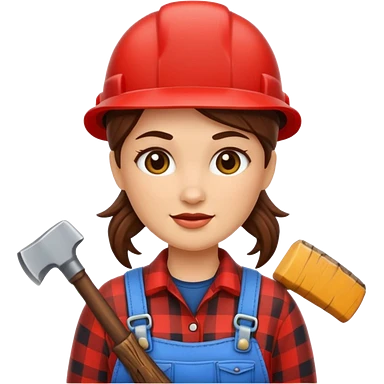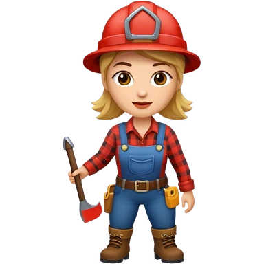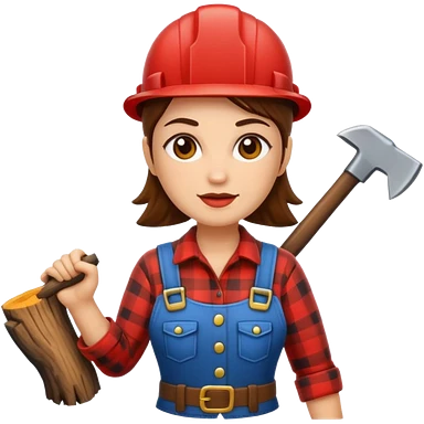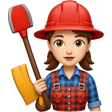lumberjack woman holding axe pink checked shirt and overall emoji | AI Emoji Generator